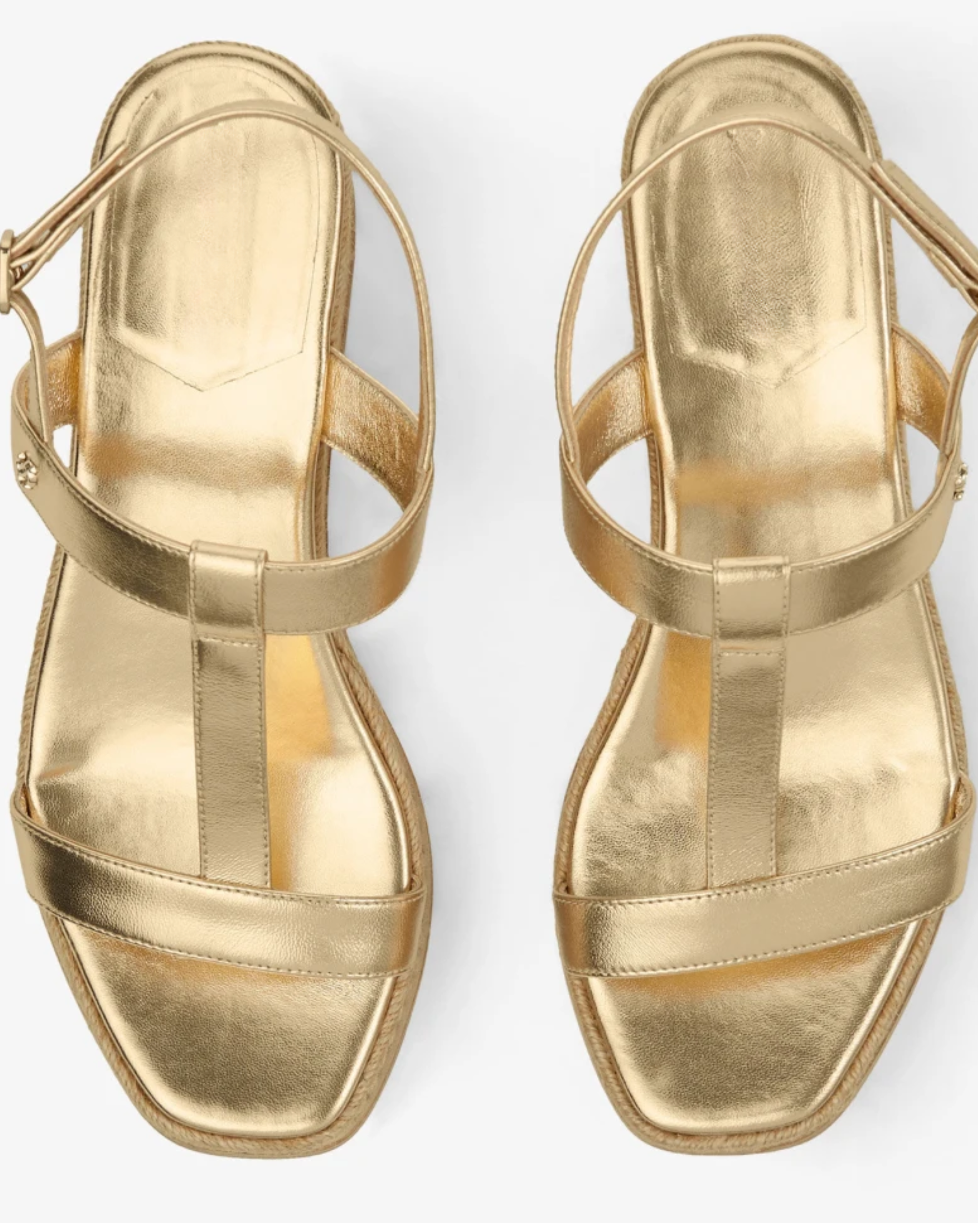Effortlessly chic with a sun-kissed glow, the Avere Bella form Wedges are designed for elevated everyday elegance. Featuring sleek metallic gold straps in a flattering T-strap silhouette, this pair brings together global resort aesthetics and all-day comfort. The woven espadrille wedge adds height without compromising stability, making it perfect for brunches, holidays, and festive outings.